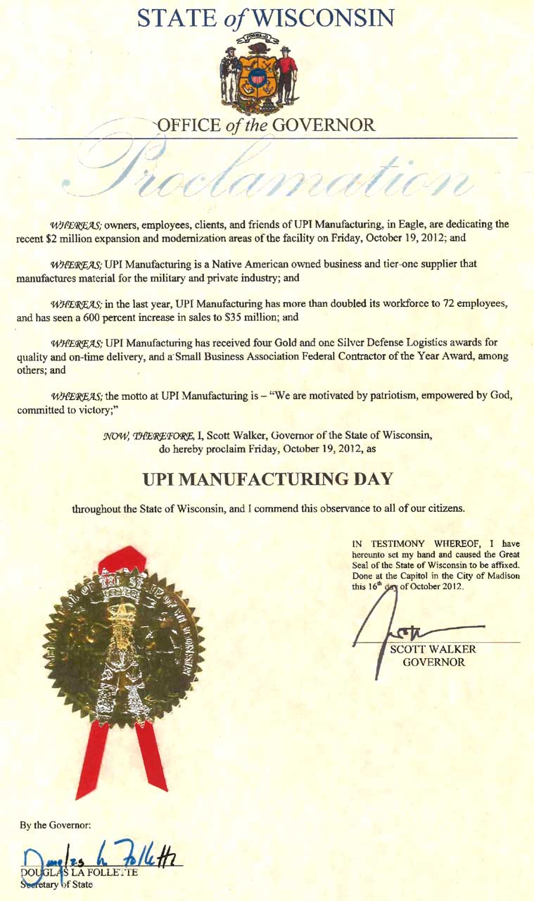 UPI Manufacturing | S87 W35670 Godfrey Lane | Eagle, WI 53119 | Phone: 262-594-3305 | Fax: 262-594-3326